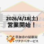 - 【2026年4月18日土曜日!】お気軽にお問合せください!2026/4/18お気軽にお問合せください! おはようございます!草加市の屋根屋ワタナベサービスです! 本日、4月18日土曜日の営業を開始いたします! 屋根修繕や雨樋修繕等のお見積り依頼やご質問、お気軽にお問合せください […]