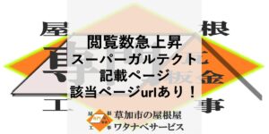 スーパーガルテクトの投稿閲覧が急上昇 お世話になっております。草加市の屋根屋ワタナベサービス! スーパーガルテクトについて記載したページの閲覧数が急激に伸びております。 閲覧頂き、誠にありがとうございます! Google […]
