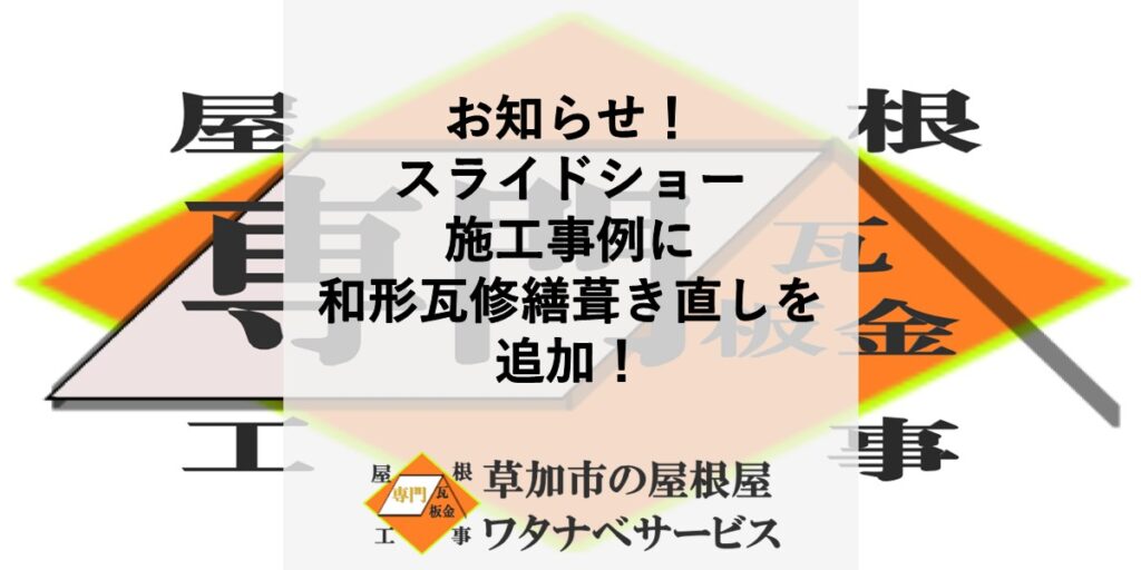 Home » お知らせ » 【追加ページのお知らせ】和形瓦屋根修繕スライドショー施工事例を追加!