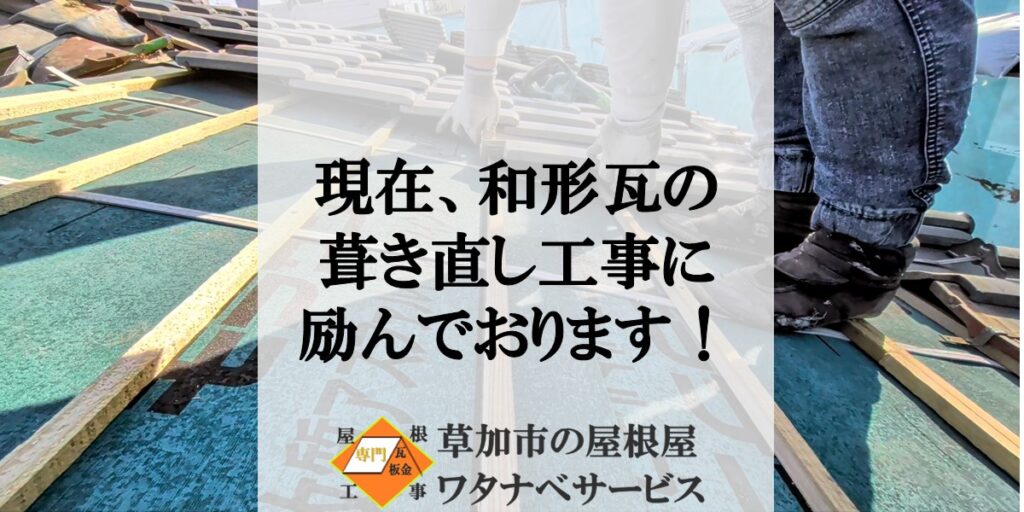 只今、千葉県にて和形瓦の葺き直し工事に励んでおります!