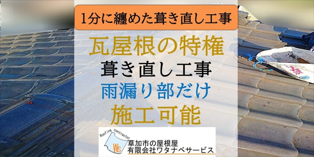 【瓦屋根 雨漏り修理】1分で分かる葺き直し工事 雨漏り部だけ施工可能