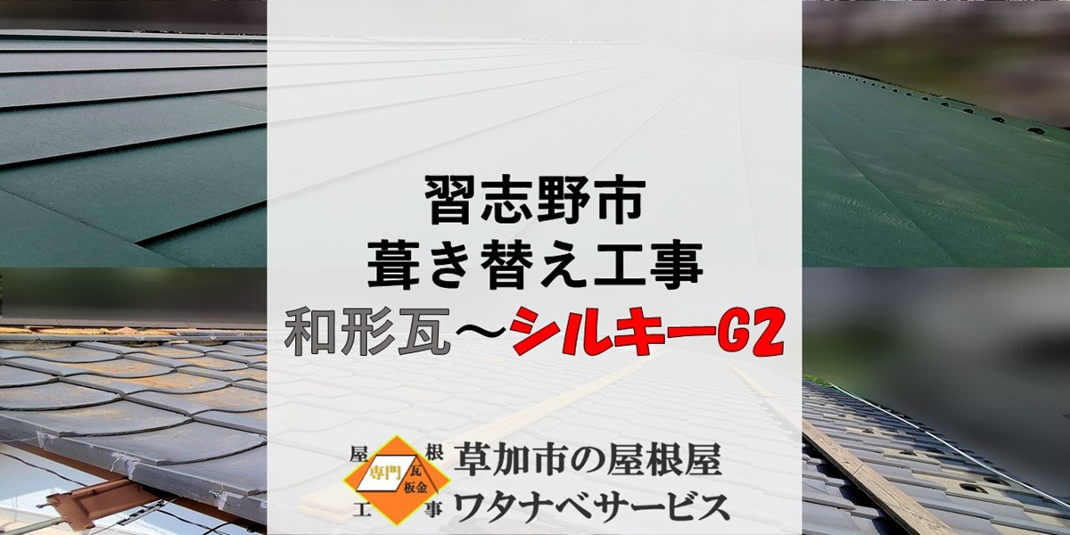 習志野市にて和形瓦を撤去し新たにガルバリウム鋼板シルキーG2へ葺き替える工事を施工させて頂きました。