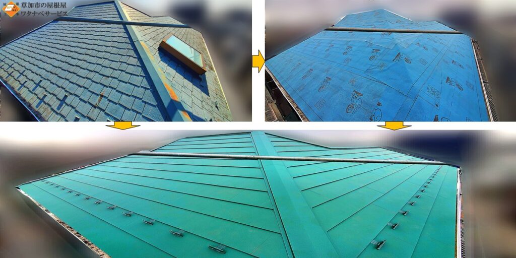 スレート屋根で確実に効果がある工事内容は【葺き替え】もしくは【カバー工法】となります。