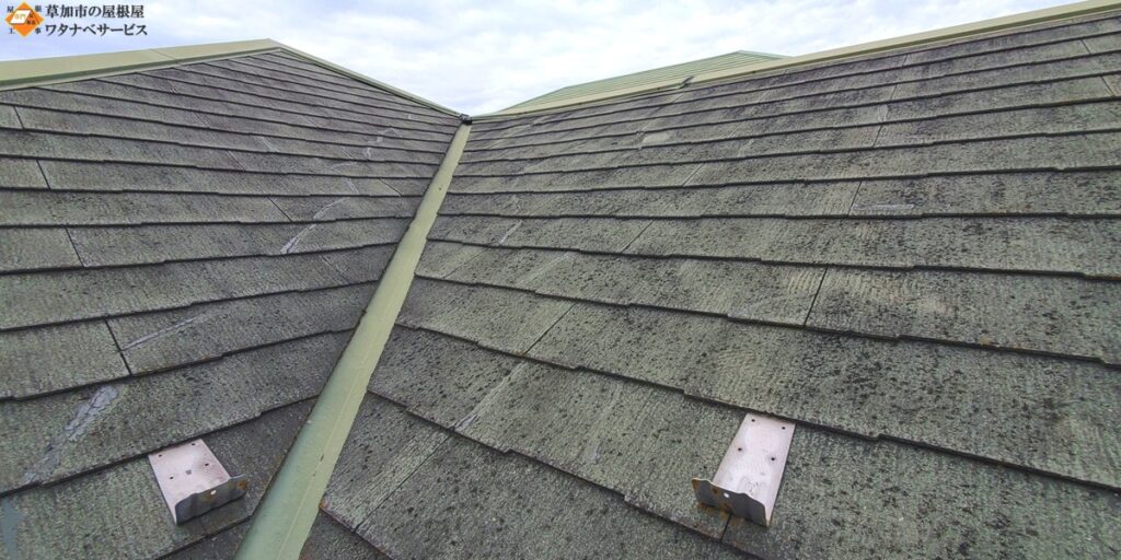 部分的にスレートを差し替えても焼け石に水で、防水シートを痛める等のデメリットが強いため、正しい修繕とは言えません。