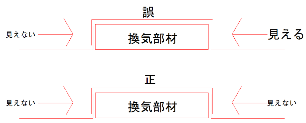 弊社が社外品の換気棟を使う事が無いので断言する事は難しいですが、通常であれば、換気部が露見する事はありません。