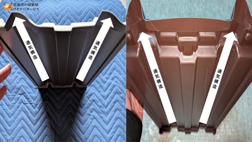 赤外線反射率が高い事に加え通気構造で屋根面の温度上昇を抑制します!