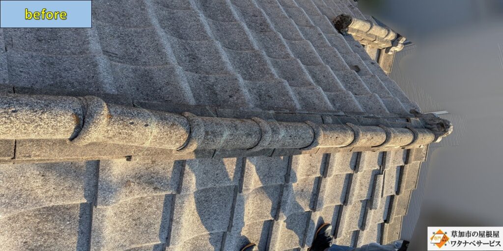 草加市にてセメント和形瓦屋根の修繕をご依頼いただきました!