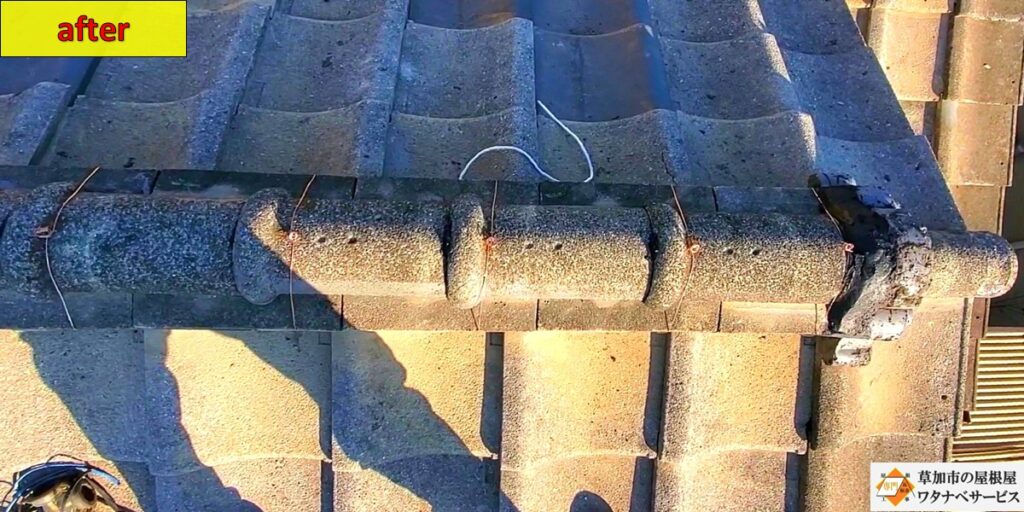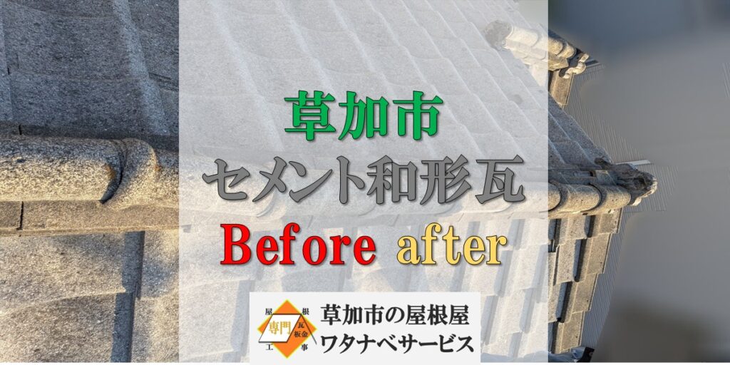 【草加市 セメント和形瓦 屋根修繕】before after