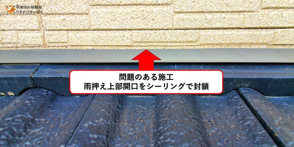 大半の塗装業者さんは【屋根・外壁の構造と雨仕舞い】を理解していないため、屋根の調査時にこの様な工事をされてしまっているお家をよく見かけます。